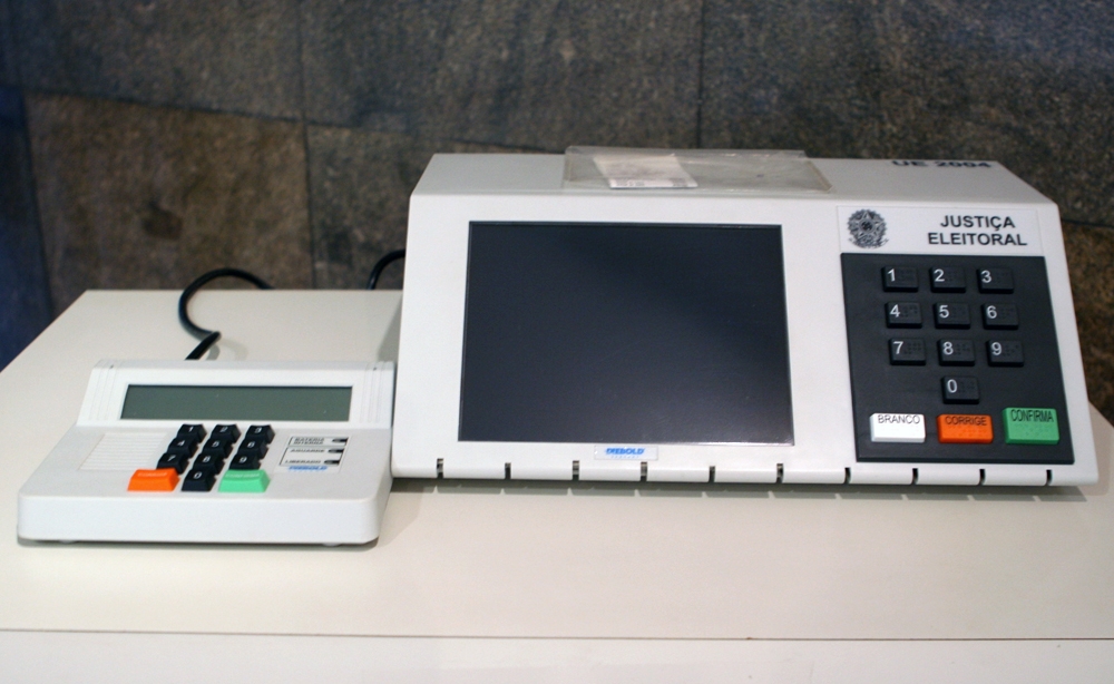 - Urna eletrônica produzida pela empresa Deibold Procomp, em 2004.